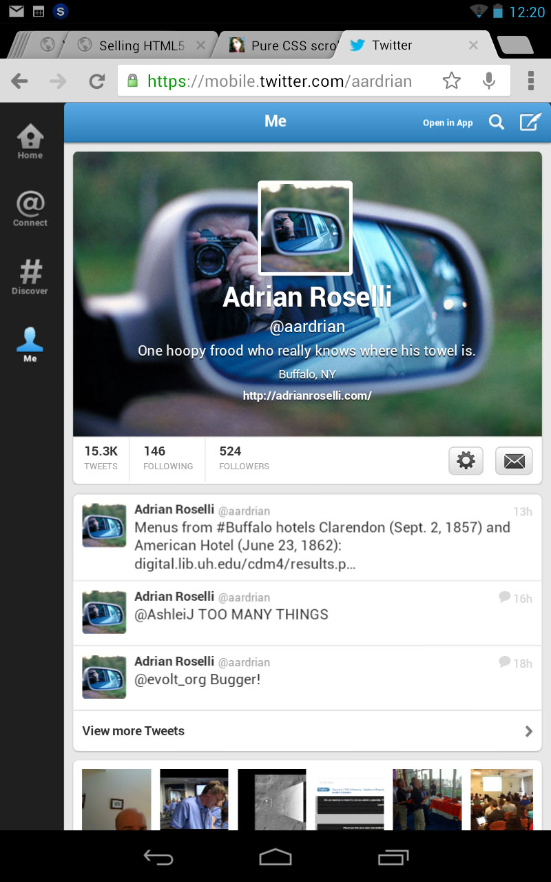Screen capture of old Twitter header on mobile browser (Chrome on Nexus 7).