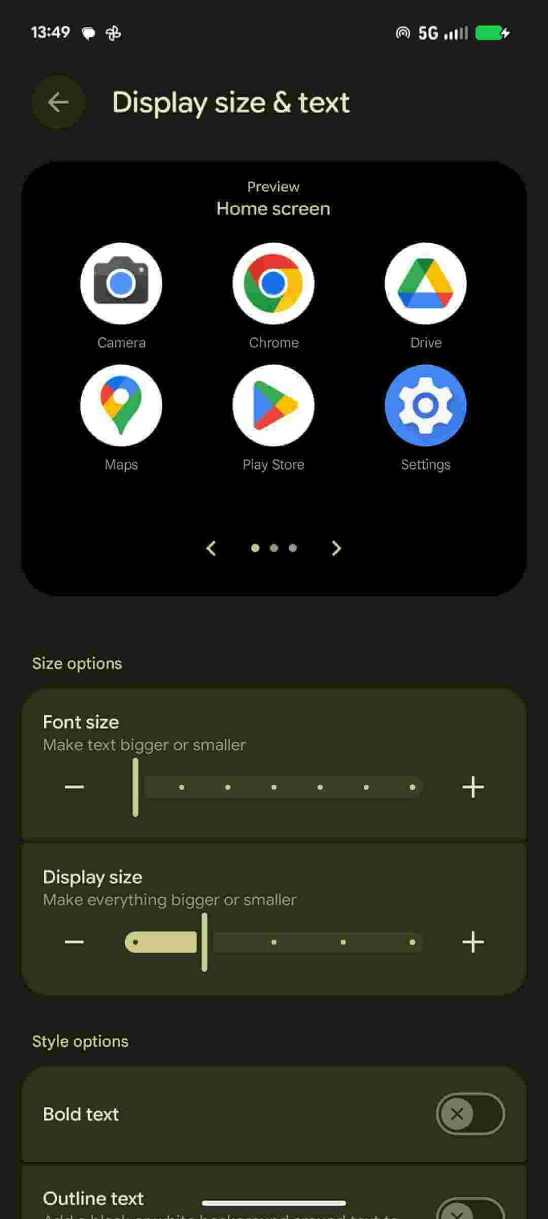 In Android, go to Settings → Accessibility → Display size & text; in the Size options section, go to Font size and make it as large as possible.