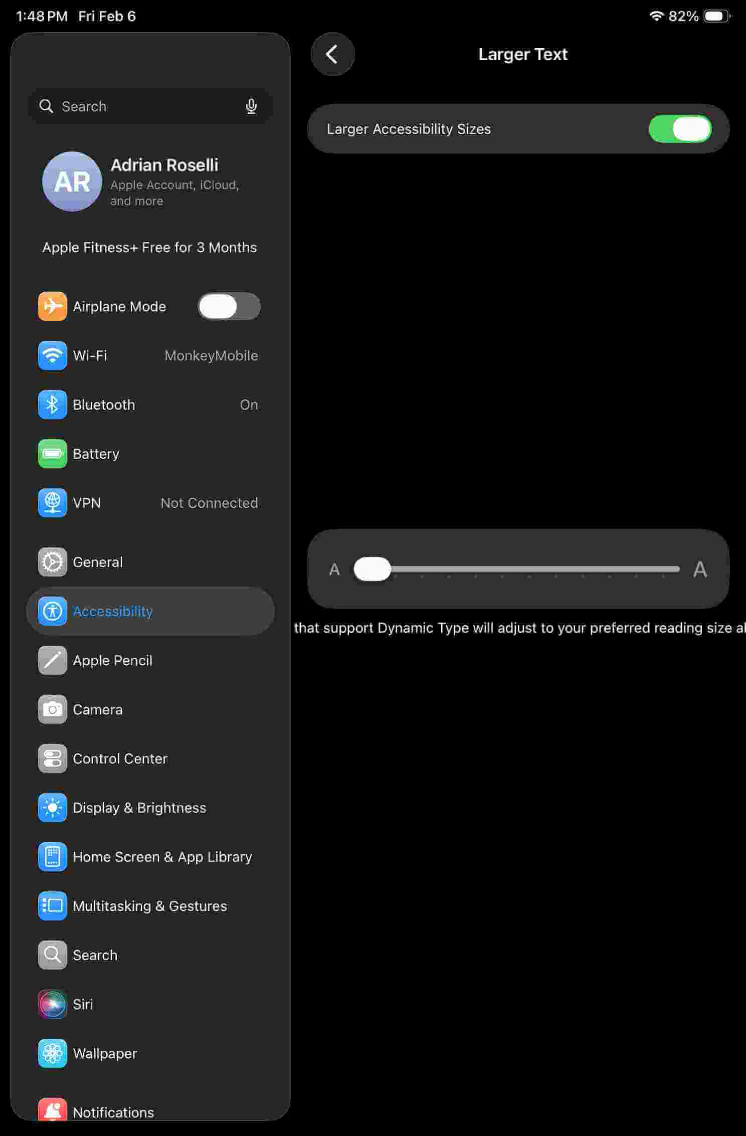 In iDevices, go to Settings → Accessibility → Display & Text Size → Larger Text, toggle Larger Accessibility Sizes, then drag that slider all the way to the to max.